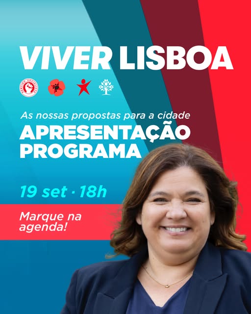 No próximo dia 19, sexta-feira, pelas 18h00, é apresentado o programa da coligação ViverLisboa.